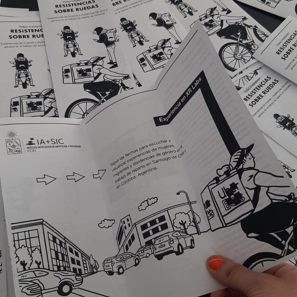 «Resistencias sobre ruedas» presentó de manera innovadora los resultados y reflexiones de la investigación homónima desarrollada por el Núcleo Inteligencia Artificial, Sociedad y Comunicación en Santiago de Chile y Córdoba. Esta investigación fue llevada a cabo como parte del proyecto «Future ways of working in the digital economy», financiado por el Consejo de Investigación de Noruega (RCN).