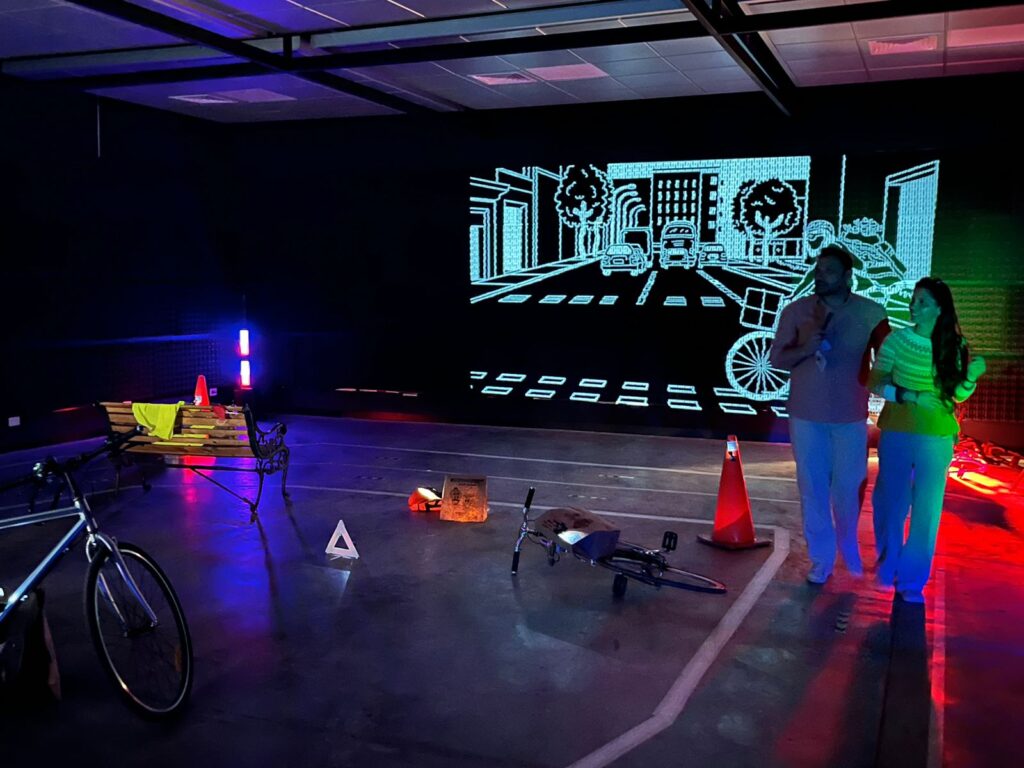 A través de tecnologías inmersivas, los visitantes tuvieron la oportunidad de sumergirse en la experiencia de trabajadores de reparto, lo que les permitió explorar y reflexionar sobre los desafíos, transformaciones y posibilidades que plantea la economía digital en el espacio público urbano de estas ciudades.
