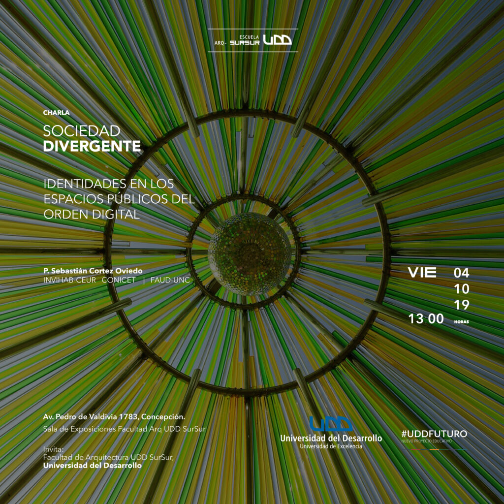 A partir de la invitación de la Facultad de Arquitectura de la Universidad del Desarrollo de Chile, conversamos acerca de la sociedad divergente. Charla que buscó indagar y caracterizar los procesos de construcción de identidades vinculado a los consumos culturales mediatizados por narrativas transmediáticas. La Hipermediación de lo social se expresa como discusión principal, capaz de segmentar construcciones de identidades asociadas a espacios de lo público, tanto en lo digital como en lo urbano.